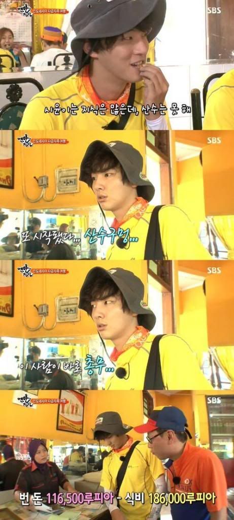 Cả nhóm bắt đầu lo lắn về chi phí cho bữa ăn nhưng thủ quỹ Yoon Shi Yoon nhanh chóng trấn an mọi người” đừng lo lắng”. Nhưng chính anh chàng lại là người bất an nhất, anh bỏ dở bữa cơm và nhanh chóng đến quầy thanh toán để xác nhận. . Bằng ngôn ngữ bản địa và cả ngôn ngữ hình thể, Yoon Shi Yoon đã hỏi được chi phí cho bữa trưa và kết quả thật bi thảm.